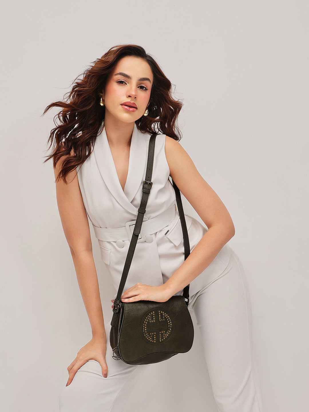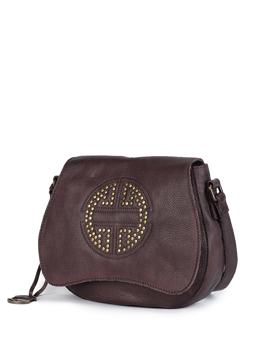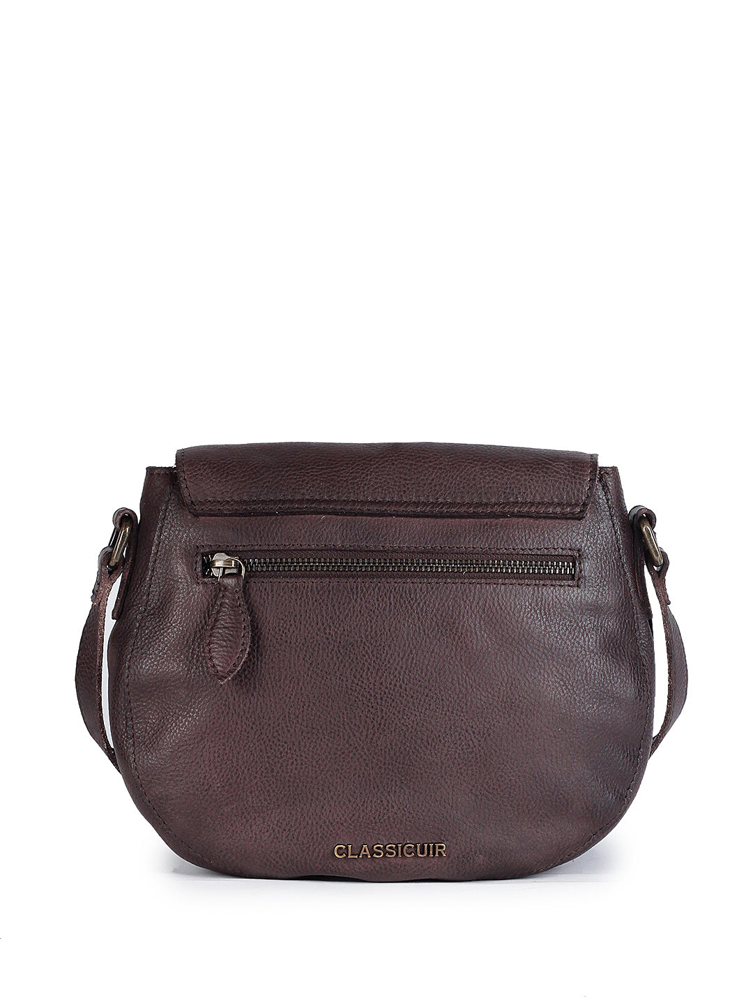 Compact yet commanding, this brown sling bag showcases the CLASSICUIR logo in bold, gleaming studs. Crafted in rich leather with a soft curve silhouette, it blends understated luxury with edgy flair. The adjustable strap ensures effortless comfort and versatility for any look. A chic essential for those who love to travel light without compromising on style.